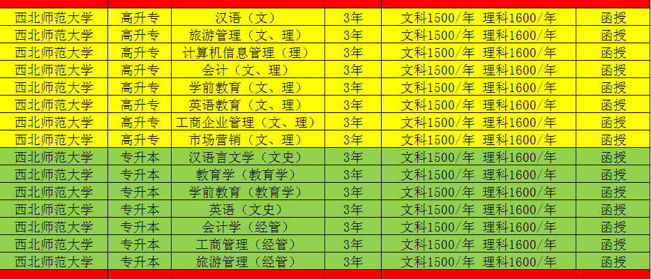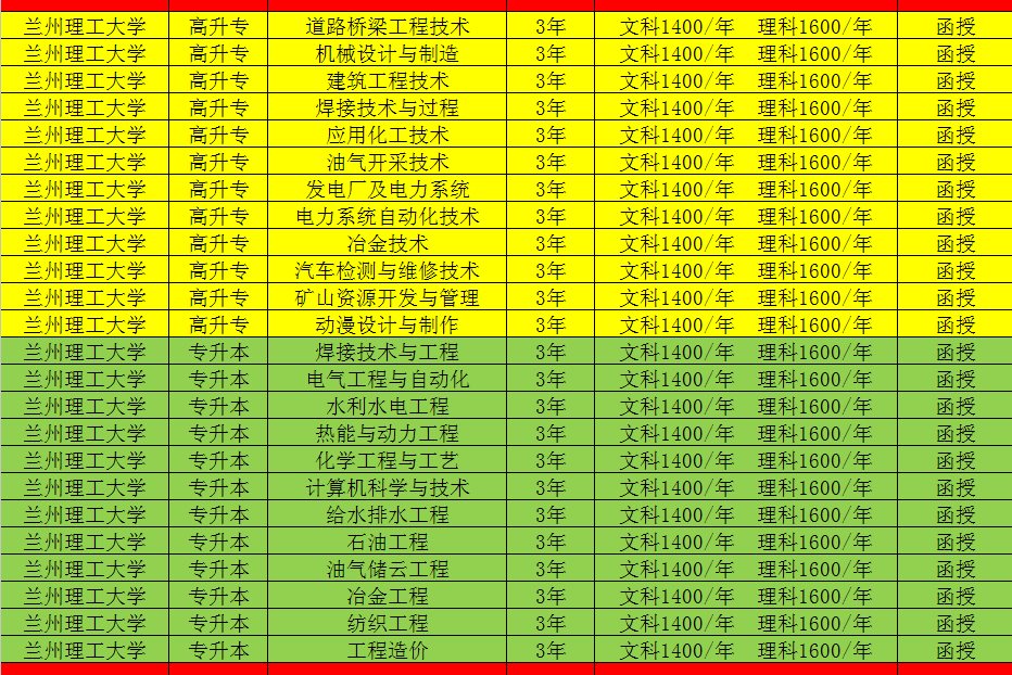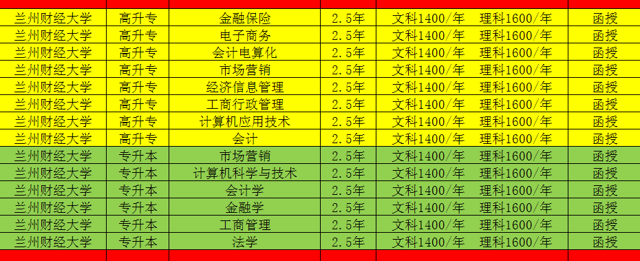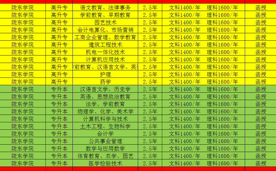 2018年函授升學歷專業對照表