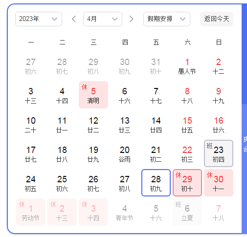 4月29日至5月3日放假調(diào)休,共5天。5月6日(星期六)正常上班。提前預(yù)祝各位同事五一勞動(dòng)節(jié)快樂!好好工作,天天向上!