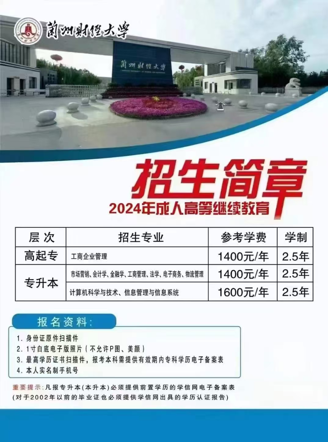 蘭州財經大學2024年高等學歷繼續教育招生簡章