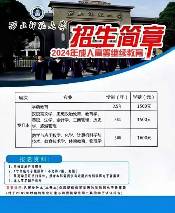 西北師范大學2024年高等學歷繼續教育招生簡章