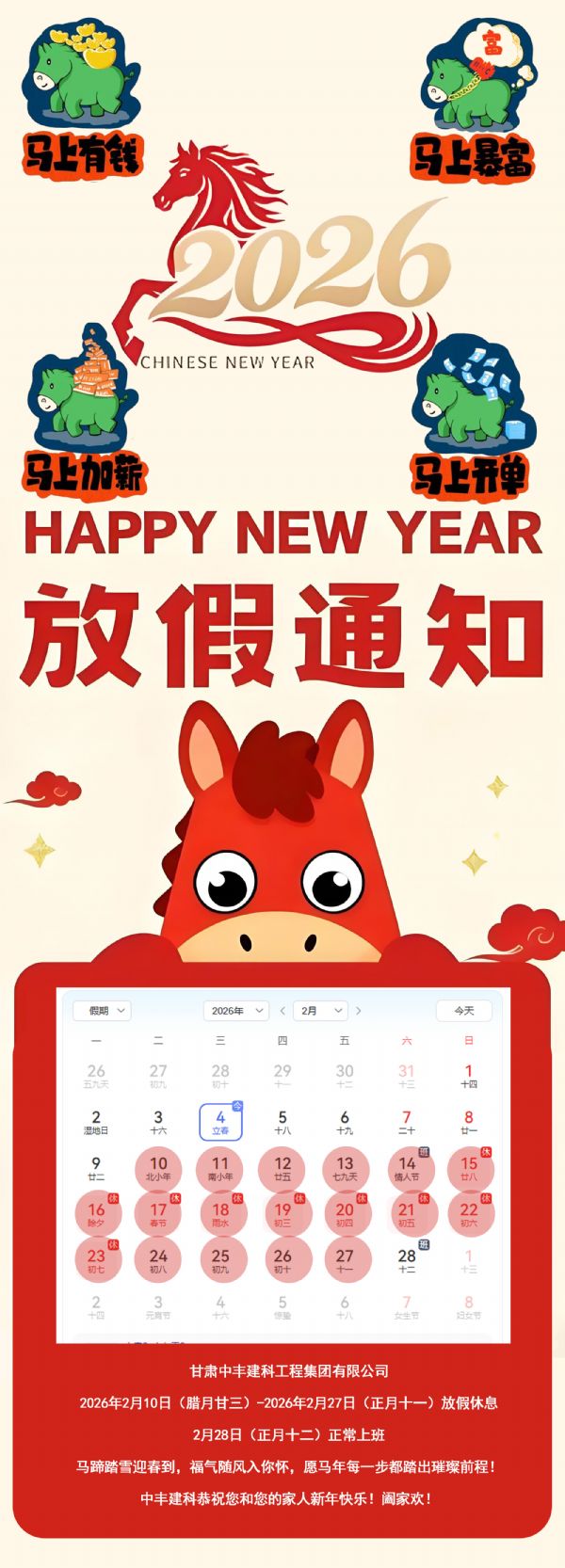 關于2026年中豐建科(甘肅)集團春節放假的通知